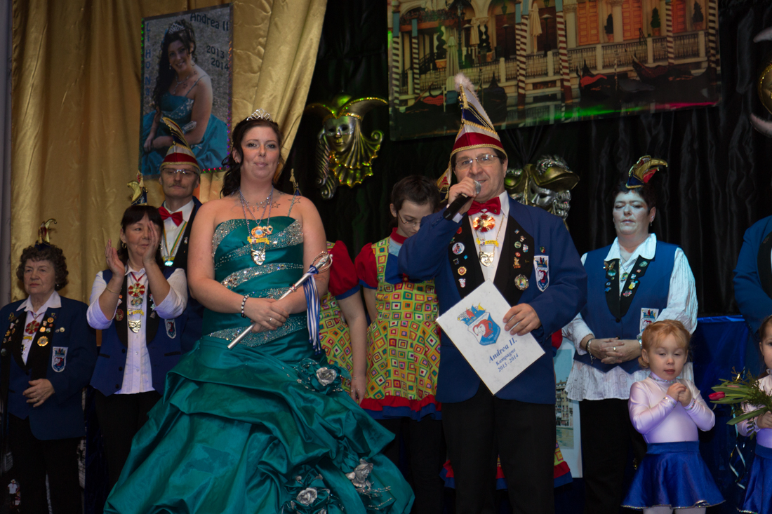 Das Highlight an diesem Abend war natürlich die Vorstellung der Jubiläumsprinzessin Andrea ll. Alle Besucher erhoben sich, als Michele Lanotte Andrea ll. bei dem Lied von Jennifer Rush "The Power of Love" auf die Bühne geleitete. Andrea ll. war sichtlich gerührt und die Tränen flossen endgültig, als sie von ihrem 1 1/2-jährigen Sohn eine Rose auf der Bühne überreicht bekam.