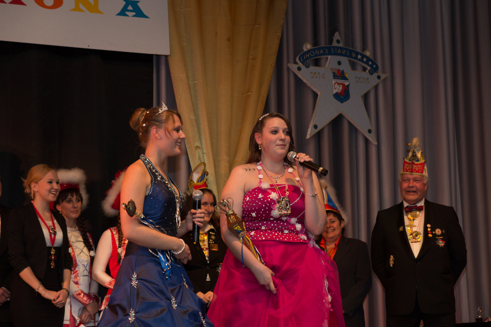 Aber auch verschiedene Tanzeinlagen begeisterten das Publikum: Wie die der Juniorengarde „Hessemer Kiesbolle“ mit dem Showtanz eines „verliebten tanzenden Teenagers“ und einem flotten Marschtanz, die „Diamonds“ mit einer Boxperfomance und die „Little Diamonds“, Minis der Lihona, mit einem Pippi-Langstrumpf-Tanz, und dem Tanzmariechen Selina Tischer. Für Lacher sorgten Büttenbeiträge der „Klotesse Damen“ Livia und Moni Lanotte, die das Treiben ihrer Familie und Bekannten bissig beobachteten, „Maxi & Cosi“ (Martina I. und die ehemalige Prinzessin Janine ll.) unterhielten mit Witzen und Streitereien das Publikum sowie eine „Sternschnuppe“, die auf der Erde ihr Liebesglück sucht, aber der kein Mann auf der Erde gut genug ist.